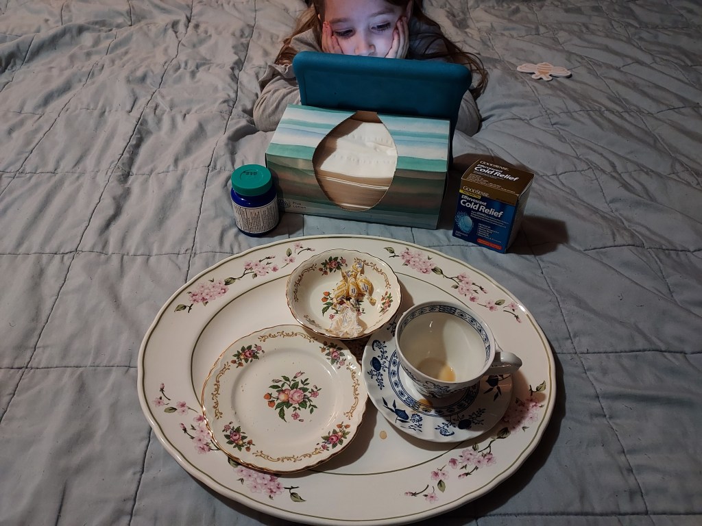 Now for a side note. What if you are single, whether or not by choice? How would you want to be treated if you did have a spouse? Treat yourself that way! Take the cold/flu medication if you medically can. Put yourself down for a nap when you can not stay awake. Enjoy that mug of tea and something fun or sappy on the television while you snuggle into the couch or sandwiched between your little ones on your bed. If you fall asleep during it? Oh, well. Just make sure the tea is on your side table. Make yourself your favorite comfort food. The kids may even like it. If not, you’ve got leftovers. Yay. Take care of yourself. You are the only one of yourself that you have.